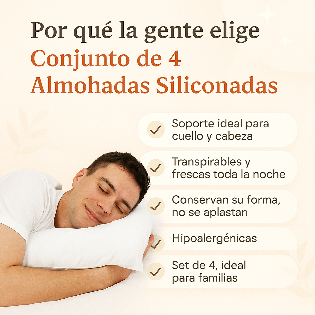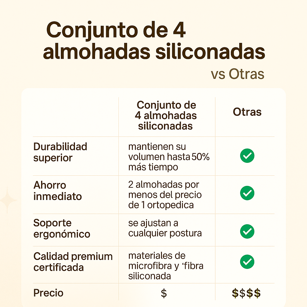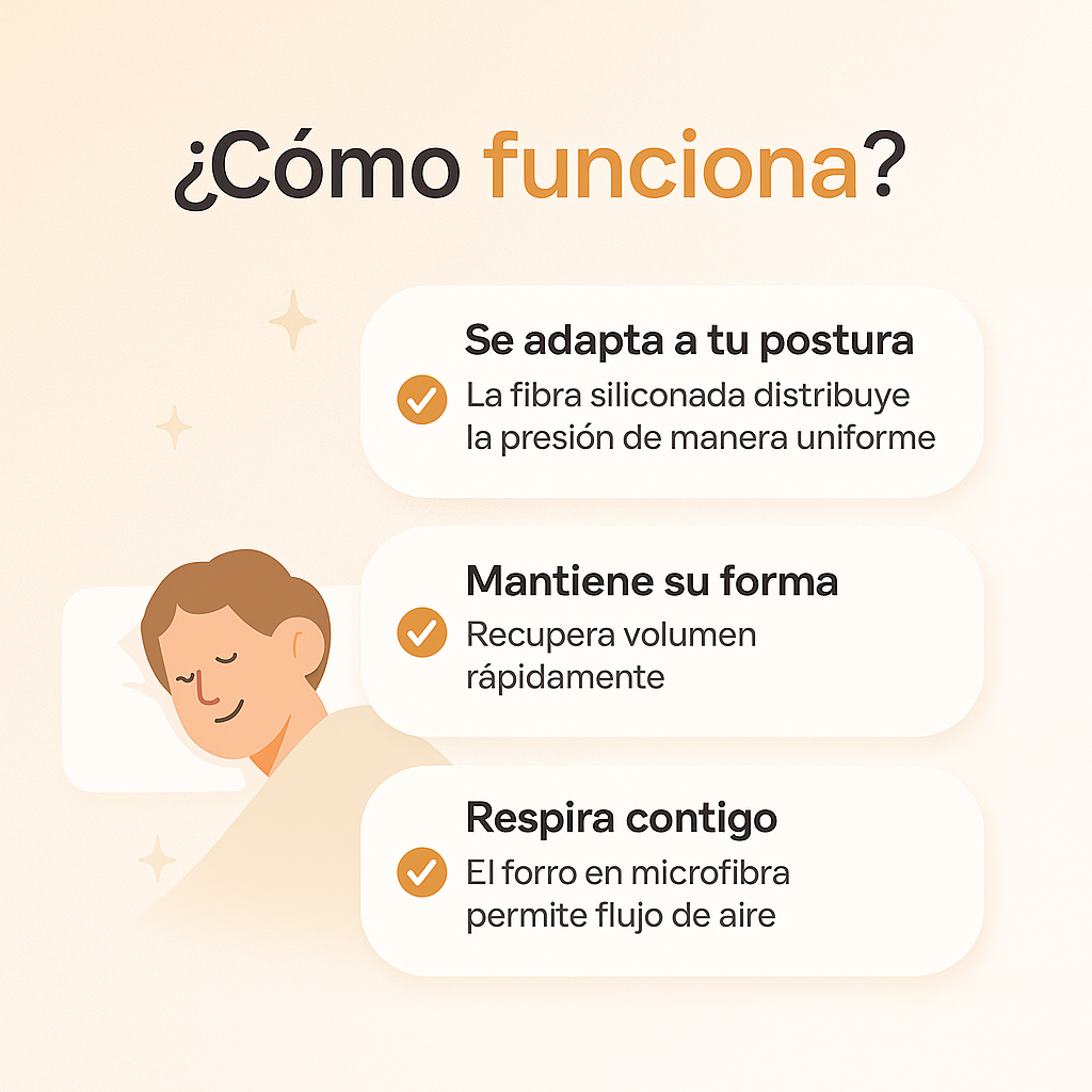 A diferencia de las almohadas tradicionales, el relleno siliconado ofrece una sensación ligera y fresca, evitando acumulación de calor y proporcionando un soporte uniforme durante toda la noche.