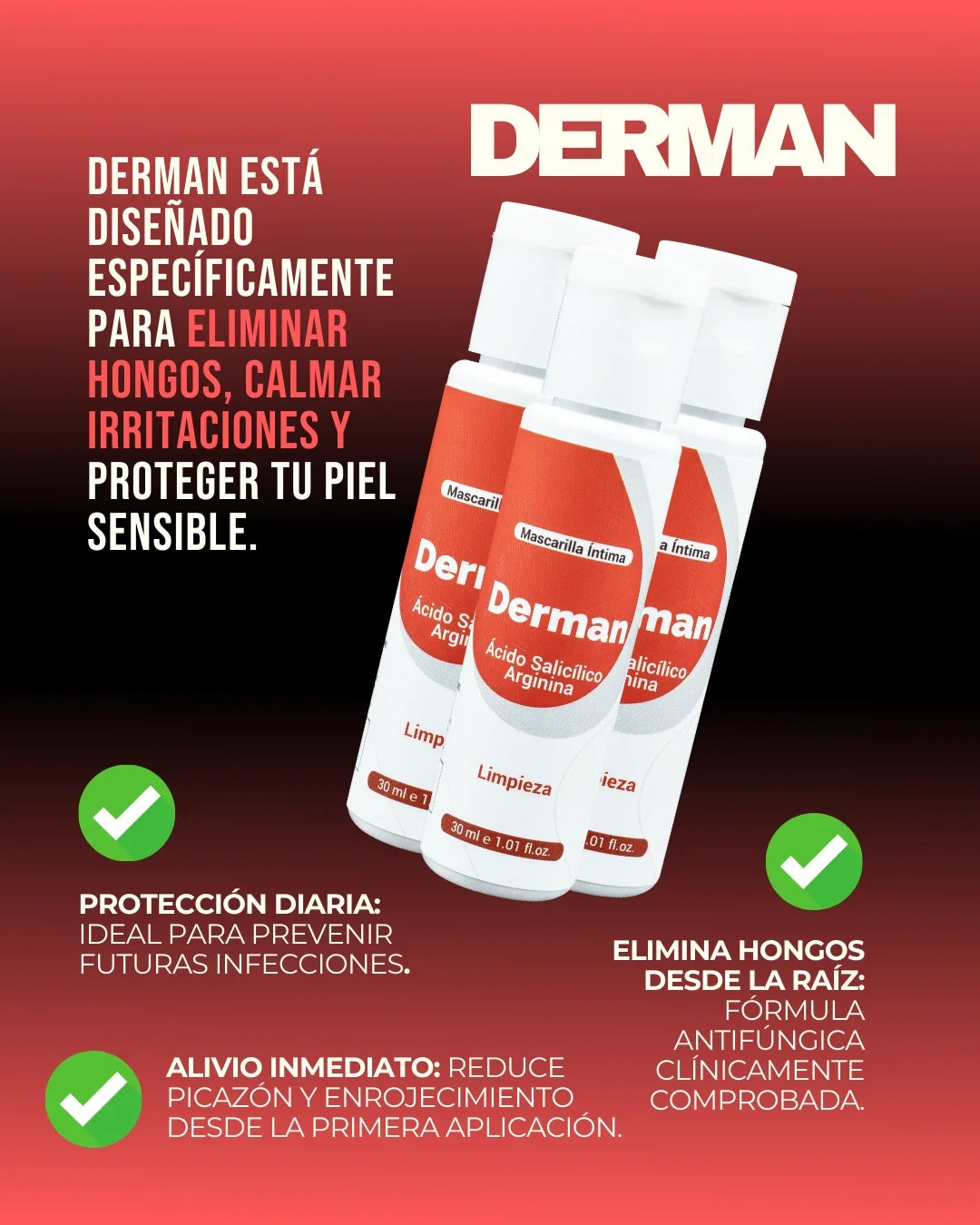 Derman® fue desarrollado para mantener la zona íntima limpia, fresca y protegida, sin usar talcos ni cremas con alcohol que resecan.