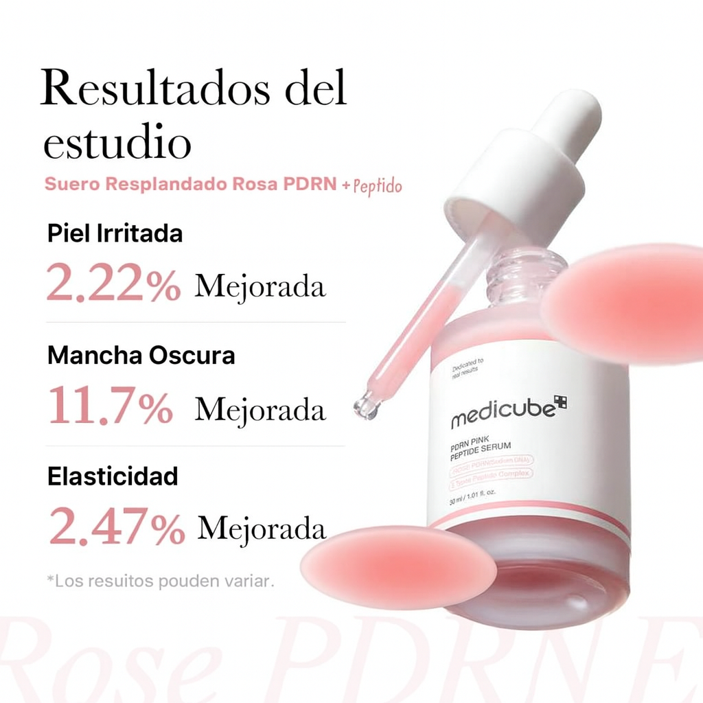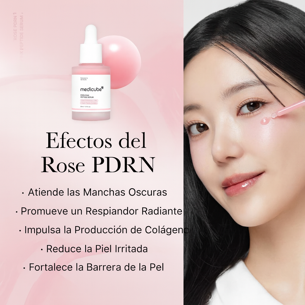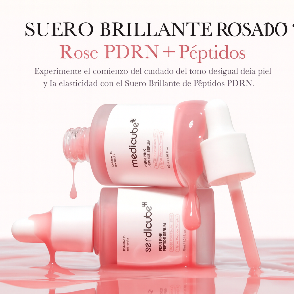 El Medicube PDRN Pink Peptide Serum utiliza PDRN (Polydeoxyribonucleotide), un componente biotecnológico extraído del ADN del salmón, famoso por su poder regenerativo.