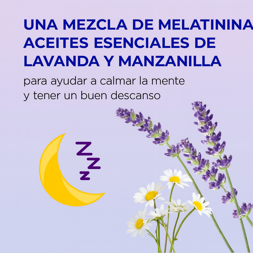 🌿 Relajación natural que combina aromaterapia y melatonina en un solo producto.