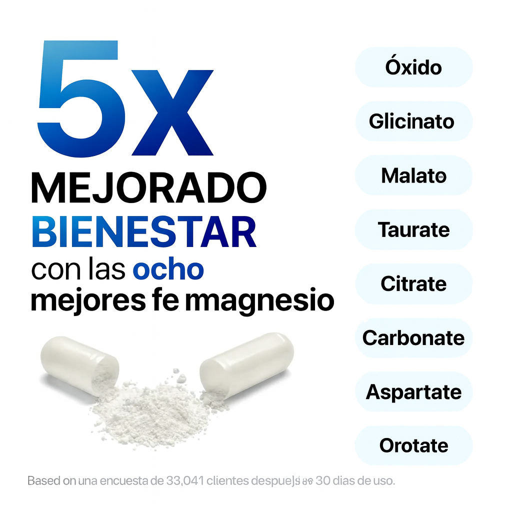 • ✅Fórmula premium y segura: 8 tipos de magnesio en cápsulas vegetarianas, sin OGM.