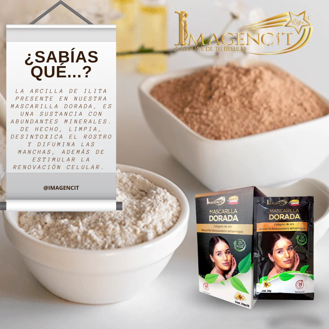 MASCARRILLA DORADA: ✨ ¡Paga 10 Mascarillas, Lleva 30!💛 Lujo y Cuidado Colombiano para Tu Piel 💛💙❤️