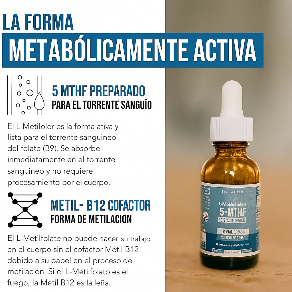 Transforma tu energía y claridad mental con Metilfolato 5MTHF + B12.
