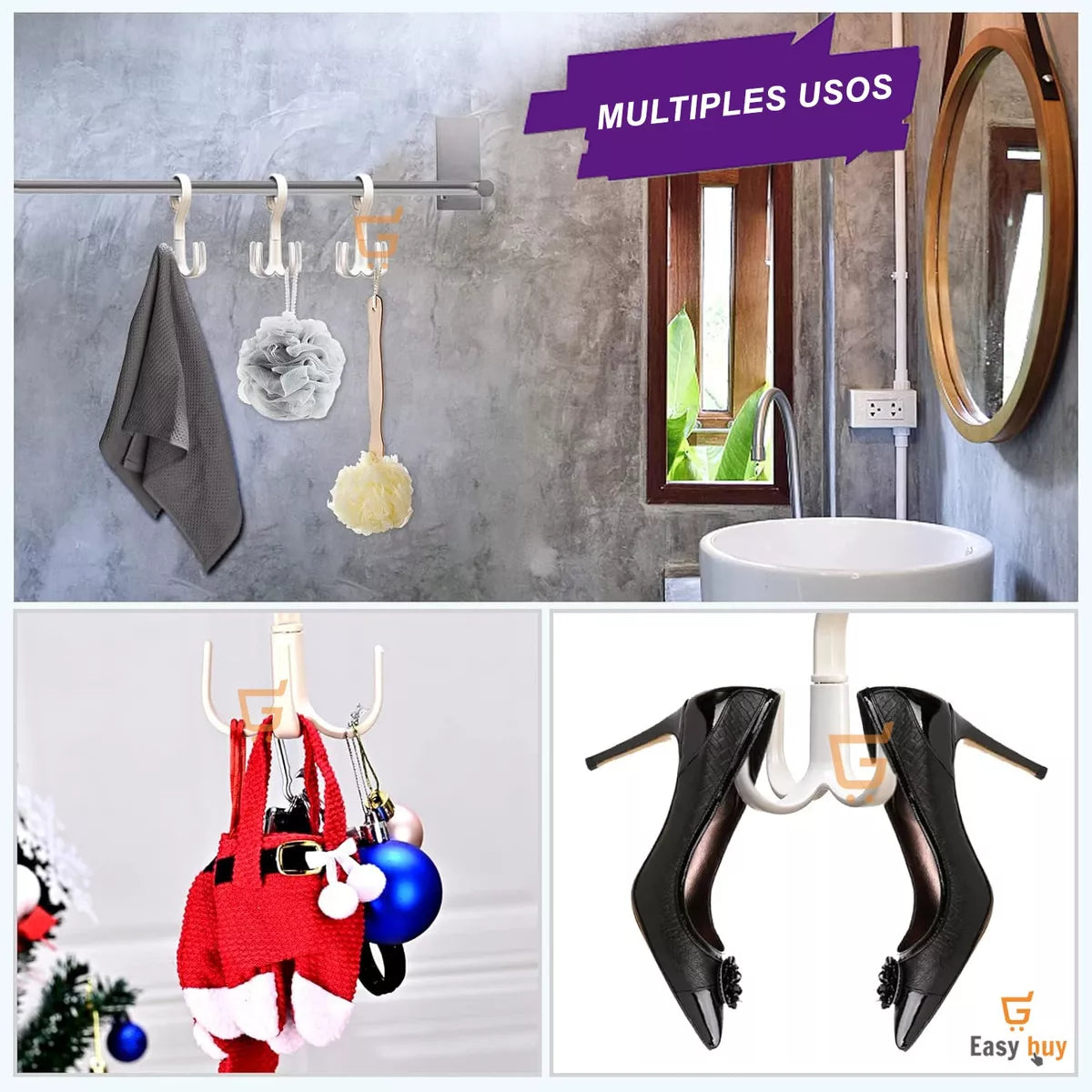 ORGANIZA Y AHORRA ESPACIO AL INSTANTE 🪝 Set de 10 Ganchos Giratorios 360°